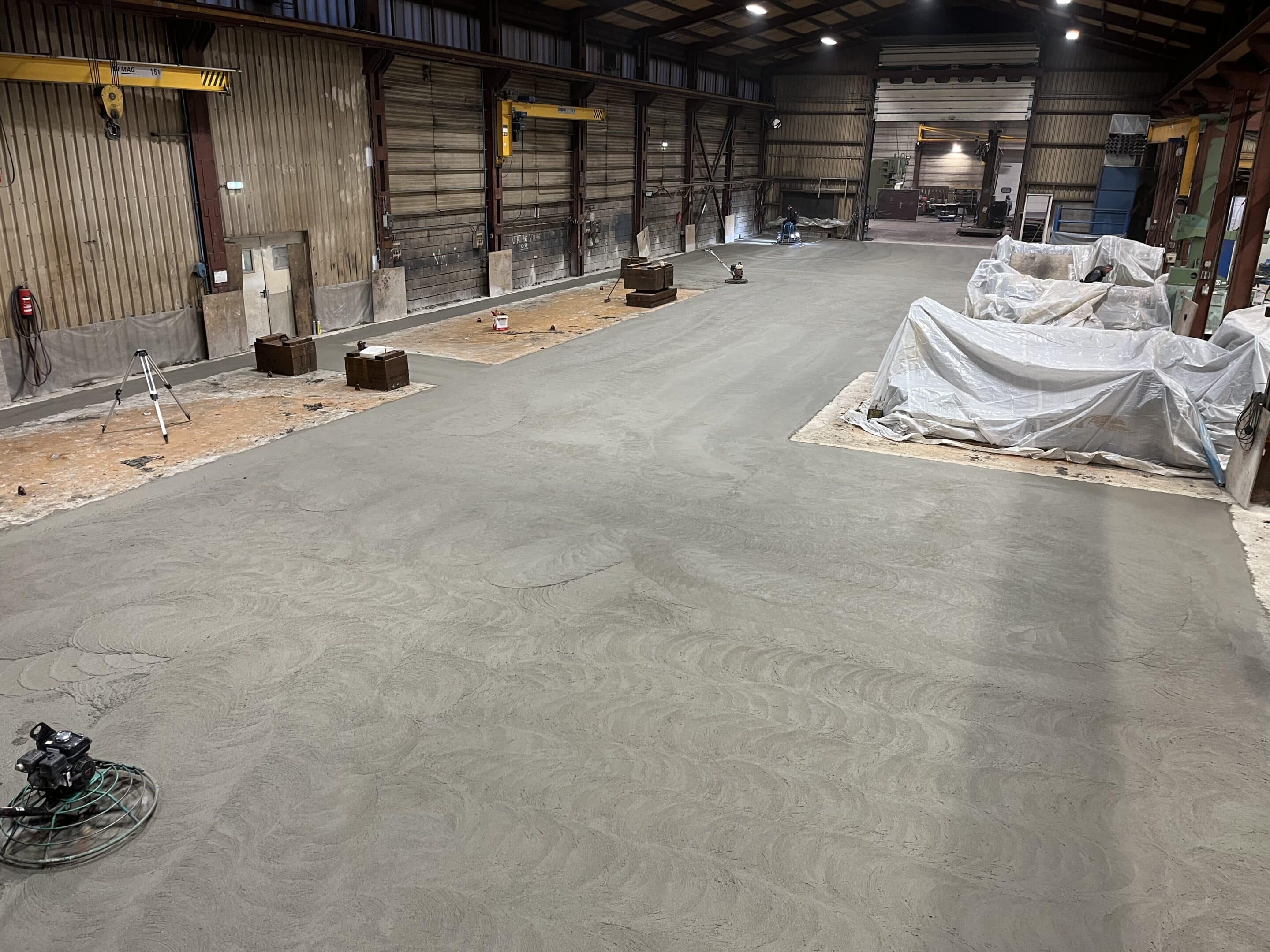 Nieuwe betonvloer constructie hal: